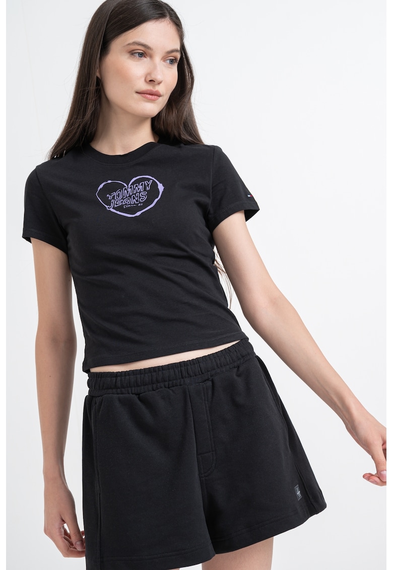 - grafic Material: bumbac Croiala: crop Model: decolteu la baza gatului Lungime maneca: maneca scurta Compozitie Exterior: 100% bumbac Info model Modelul poarta un produs de marimea S. Marimi model: 176 cm inaltime