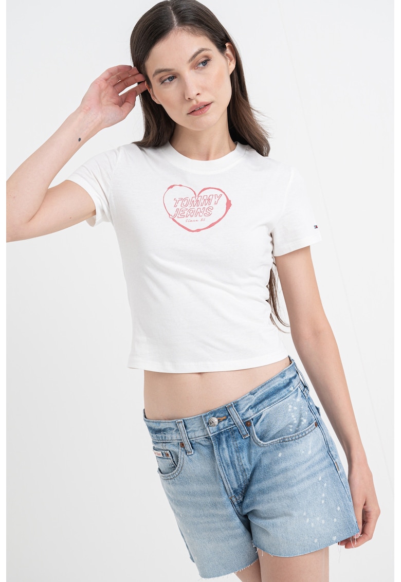 Caracteristici Culoare: alb Imprimeu: logo Material: bumbac Croiala: crop Model: decolteu la baza gatului Lungime maneca: maneca scurta Compozitie Exterior: 100% bumbac Info model Modelul poarta un produs de marimea S. Marimi model: 176 cm inaltime