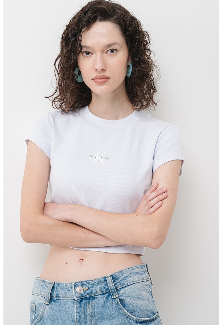 Caracteristici Culoare: albastru azur Imprimeu: logo Material: bumbac Croiala: crop Model: decolteu la baza gatului Lungime maneca: maneca scurta Compozitie Exterior: 95% bumbac
