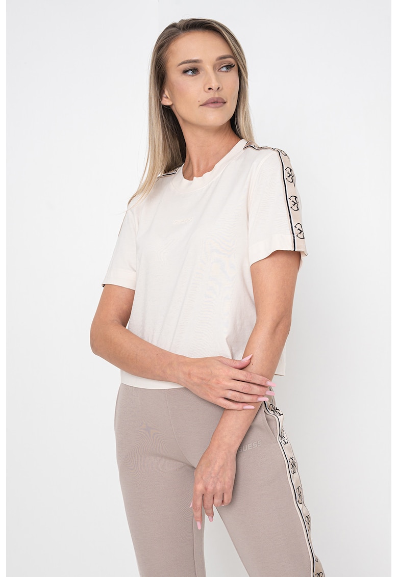 Caracteristici Culoare: bej Imprimeu: logo Material: bumbac Croiala: crop Model: decolteu la baza gatului Lungime maneca: maneca scurta Detalii: relaxed fit Compozitie Exterior: 100% bumbac Info model Modelul poarta un produs de marimea S. Marimi model: 174 cm inaltime