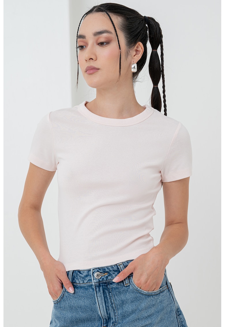 Caracteristici Culoare: roz pastel Imprimeu: uni Material: bumbac organic Croiala: slim fit Model: rotund Lungime maneca: maneca scurta Compozitie Exterior: 94% bumbac organic