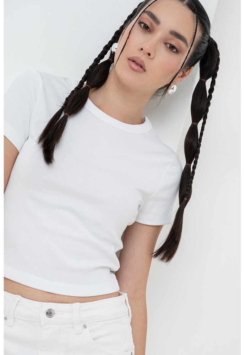 Caracteristici Culoare: alb optic Imprimeu: uni Material: bumbac organic Croiala: crop Model: rotund Lungime maneca: maneca scurta Compozitie Exterior: 94% bumbac organic