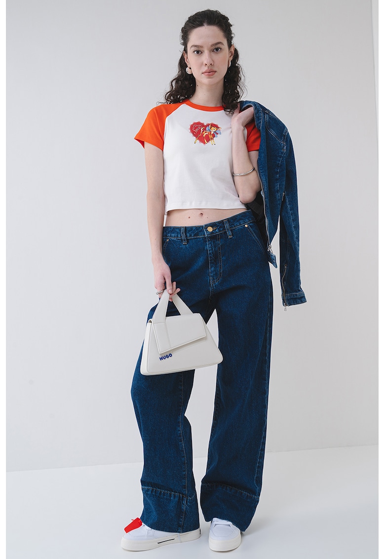 - alb optic Imprimeu: grafic Material: bumbac Croiala: crop Model: decolteu la baza gatului Maneci: raglan Lungime maneca: maneca scurta Compozitie Exterior: 100% bumbac Info model Modelul poarta un produs de marimea S. Marimi model: 177 cm inaltime