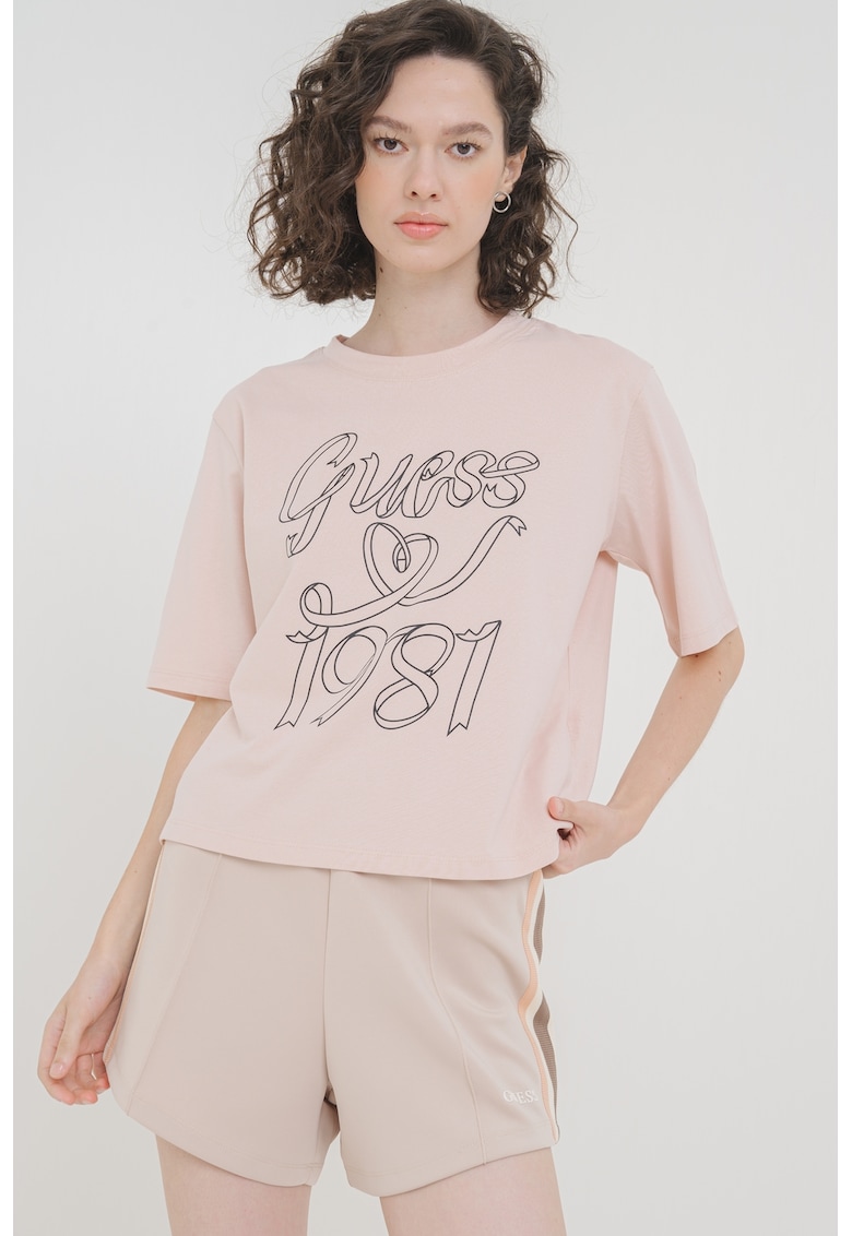 - roz pal Imprimeu: logo Croiala: regular fit Stil decolteu: rotund Material: bumbac Detalii material Exterior: 100% bumbac Info model Modelul poarta un produs de marimea S. Marimi model: 177 cm inaltime