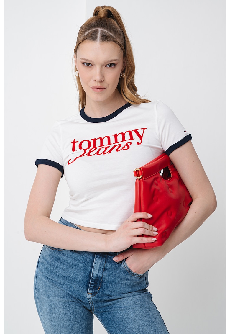 - bleumarin Imprimeu: logo Material: bumbac Croiala: crop Model: decolteu la baza gatului Lungime maneca: maneca scurta Compozitie Exterior: 100% bumbac Info model Modelul poarta un produs de marimea S. Marimi model: 176 cm inaltime