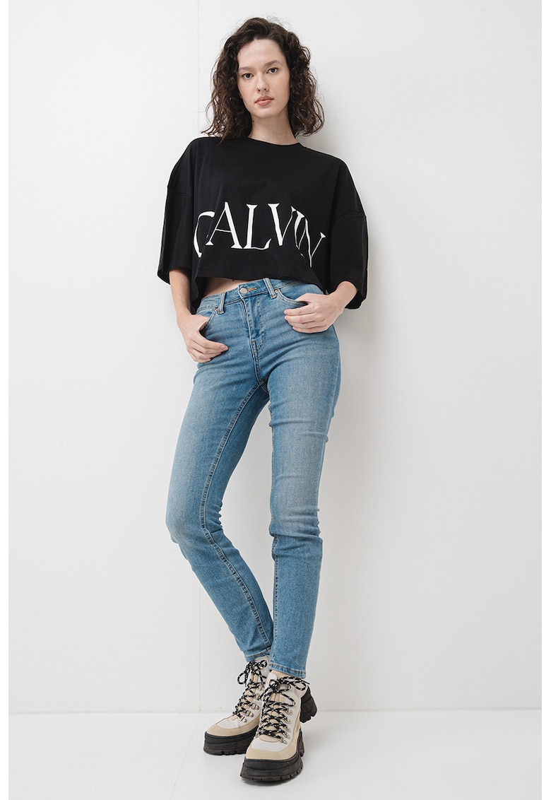 - negru Imprimeu: logo Material: bumbac Croiala: crop Model: decolteu la baza gatului Lungime maneca: maneca medie Detalii: supradimensionat Compozitie Exterior: 100% bumbac Info model Modelul poarta un produs de marimea S. Marimi model: 177 cm inaltime