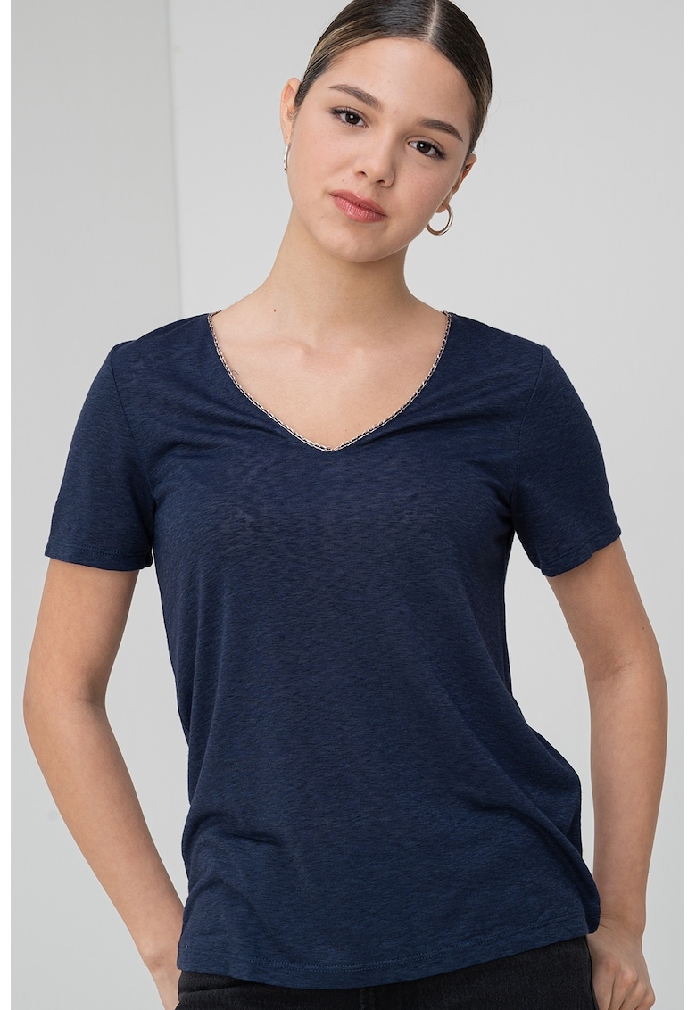 - viscoza Croiala: regular fit Model: in v Lungime maneca: maneca scurta Compozitie Exterior: 64% viscoza