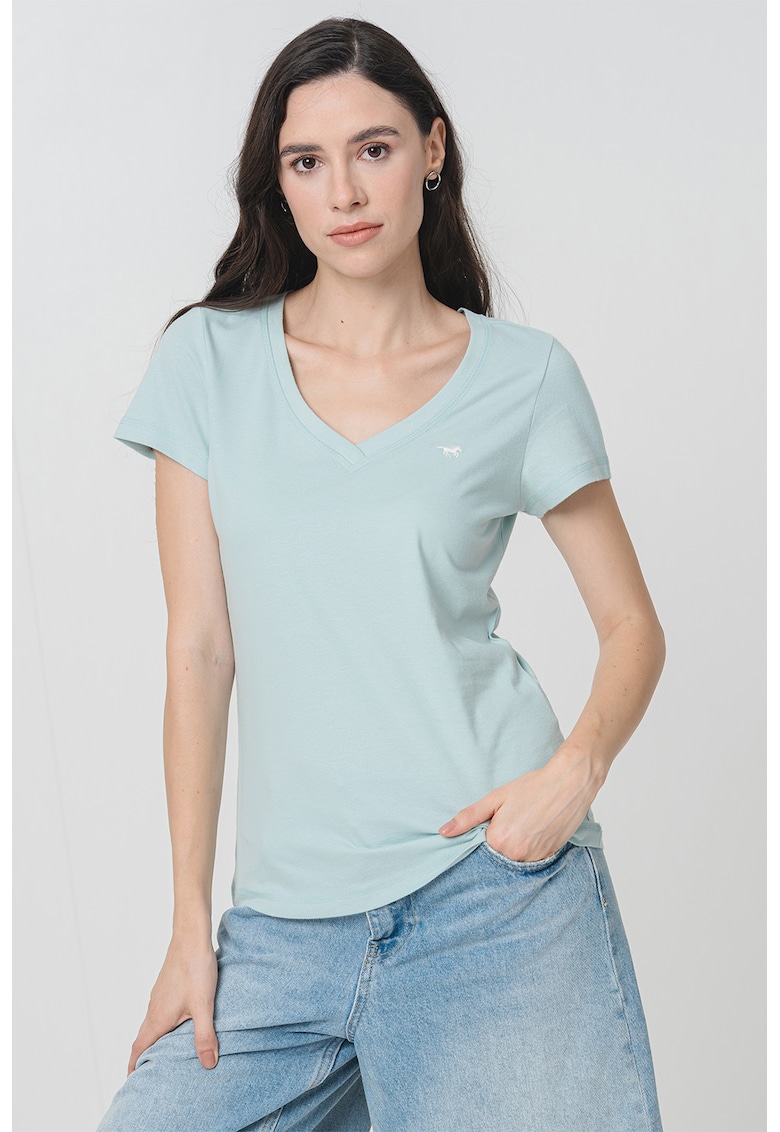 - verde menta Imprimeu: uni Material: bumbac Croiala: slim fit Model: in v Lungime maneca: maneca scurta Compozitie Exterior: 100% bumbac Info model Modelul poarta un produs de marimea S. Marimi model: 177 cm inaltime