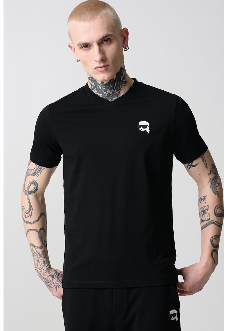 Caracteristici Culoare: negru Imprimeu: uni Material: bumbac Croiala: regular fit Model: in v Lungime maneca: maneca scurta Compozitie Exterior: 100% bumbac Info model Modelul poarta un produs de marimea M. Marimi model: 188 cm inaltime