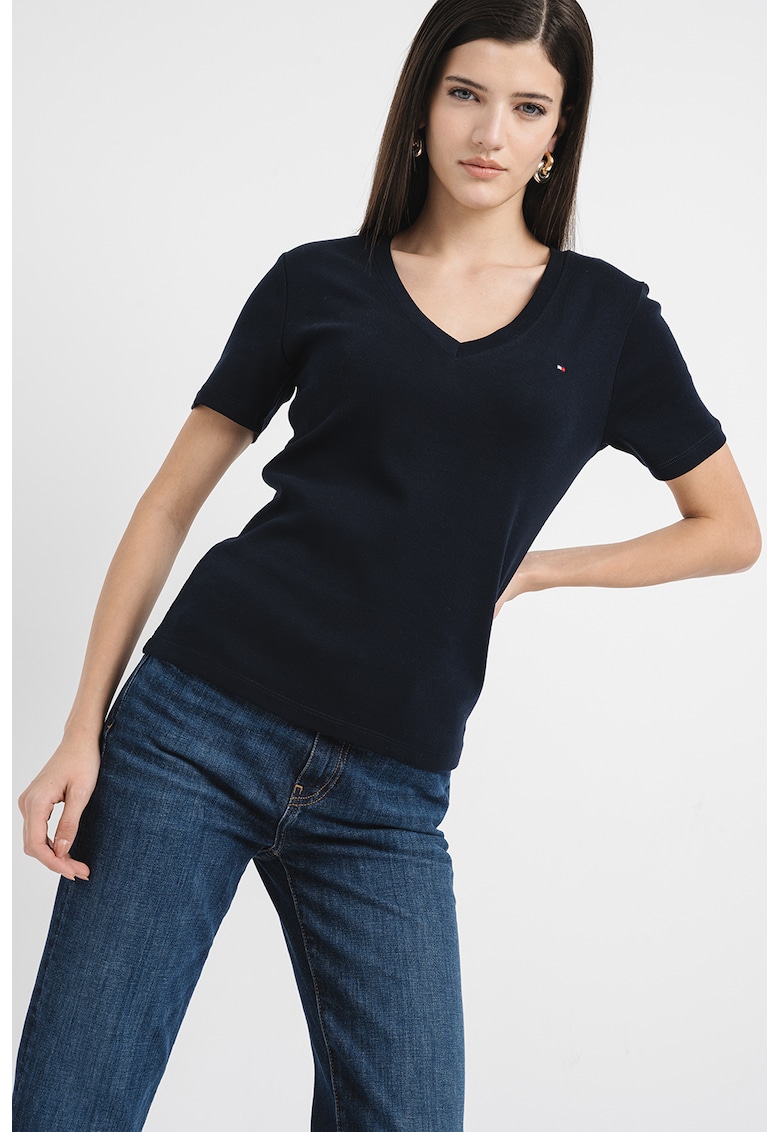 - logo Material: bumbac Croiala: regular fit Model: in v Lungime maneca: maneca scurta Compozitie Exterior: 100% bumbac Info model Modelul poarta un produs de marimea S. Marimi model: 175 cm inaltime
