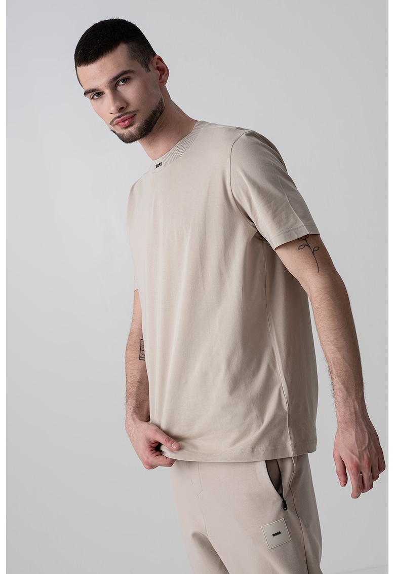Caracteristici Culoare: bej Imprimeu: uni Material: bumbac Croiala: regular fit Model: decolteu la baza gatului Lungime maneca: maneca scurta Compozitie Exterior: 95% bumbac