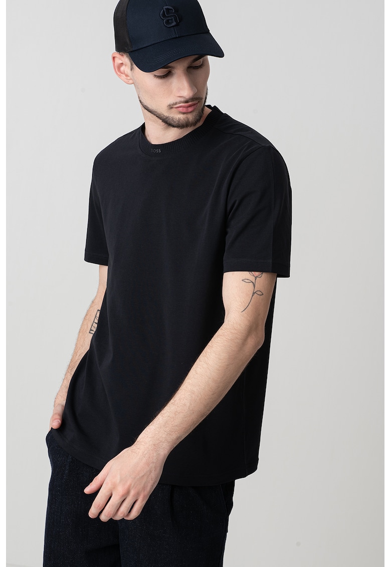 Caracteristici Culoare: negru Imprimeu: uni Material: bumbac Croiala: regular fit Model: decolteu la baza gatului Lungime maneca: maneca scurta Compozitie Exterior: 95% bumbac