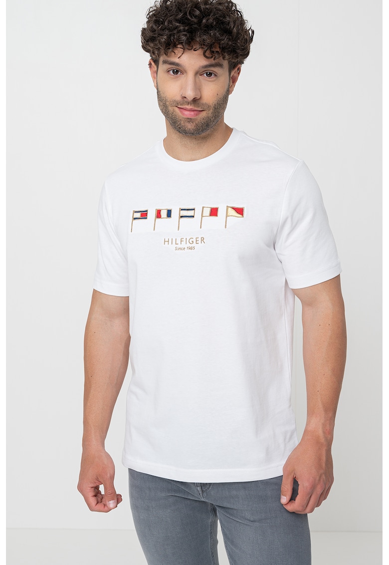 - alb optic Imprimeu: grafic Material: bumbac Croiala: regular fit Model: decolteu la baza gatului Lungime maneca: maneca scurta Detalii: detaliu brodat Compozitie Exterior: 100% bumbac Info model Modelul poarta un produs de marimea M. Marimi model: 179 cm inaltime