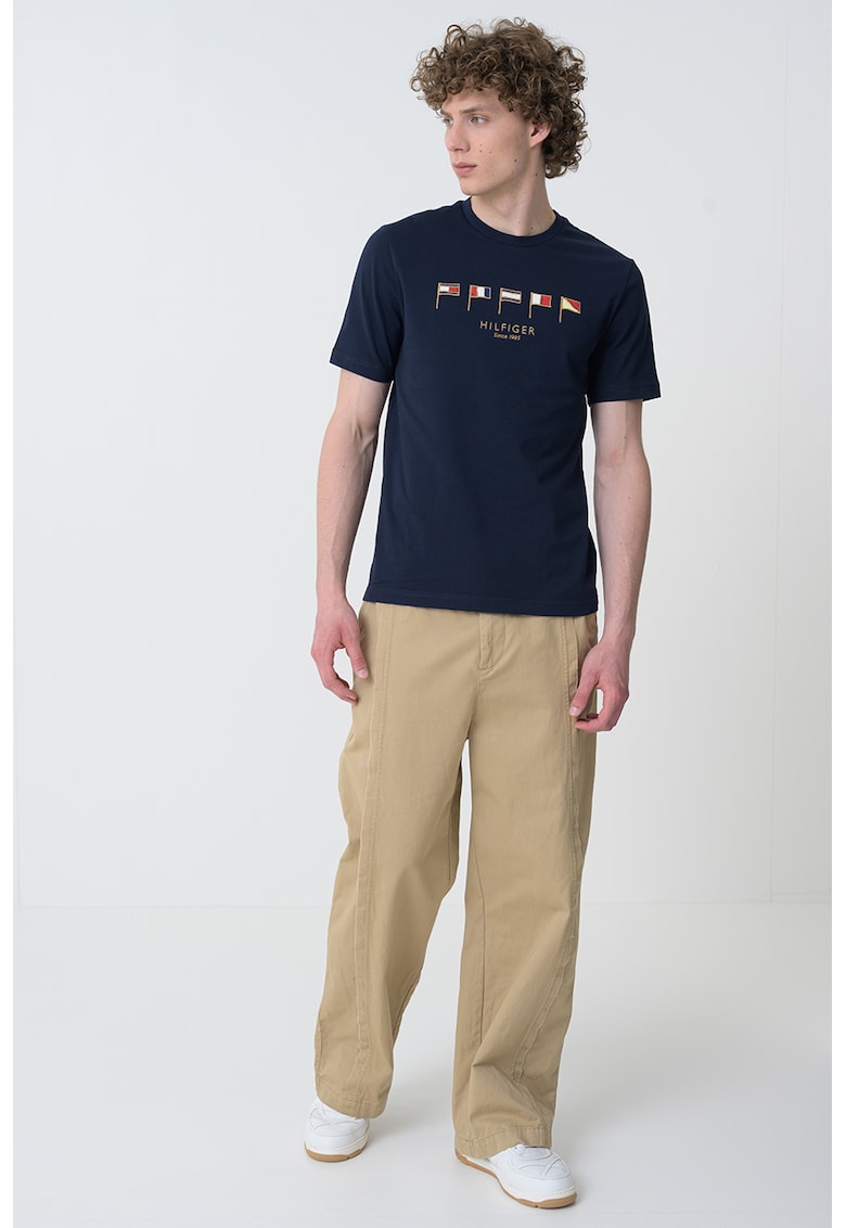 Caracteristici Culoare: bleumarin Imprimeu: logo Material: bumbac Croiala: regular fit Model: decolteu la baza gatului Lungime maneca: maneca scurta Compozitie Exterior: 100% bumbac organic Info model Modelul poarta un produs de marimea M. Marimi model: 190 cm inaltime