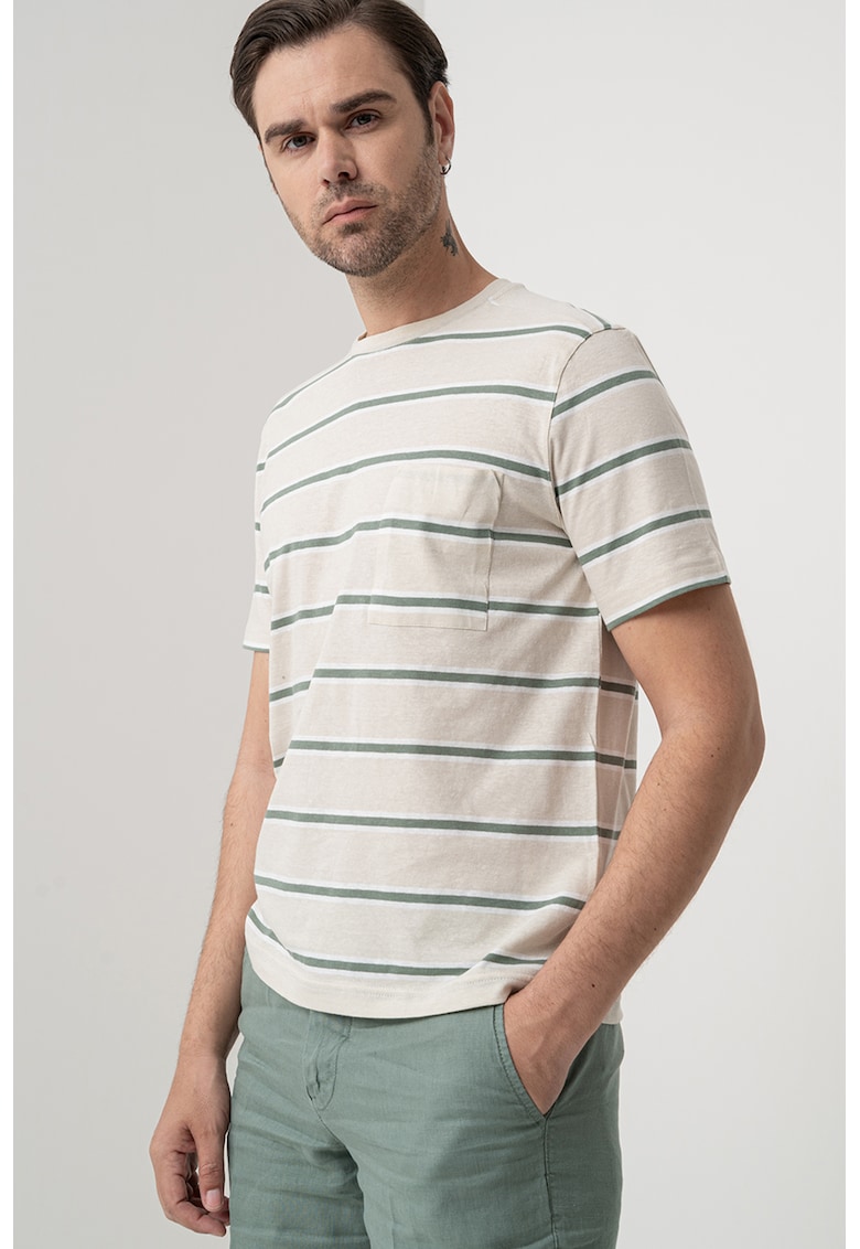 - verde inchis Imprimeu: dungi Material: bumbac Croiala: regular fit Model: decolteu la baza gatului Lungime maneca: maneca scurta Compozitie Exterior: 85% bumbac
