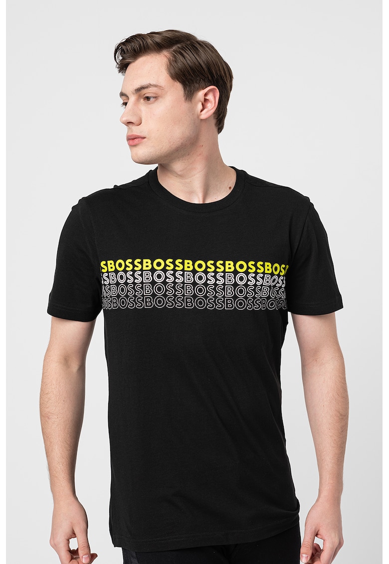 Caracteristici Culoare: negru Imprimeu: logo Material: bumbac Croiala: regular fit Model: decolteu la baza gatului Lungime maneca: maneca scurta Compozitie Exterior: 100% bumbac Info model Modelul poarta un produs de marimea M. Marimi model: 186 cm inaltime