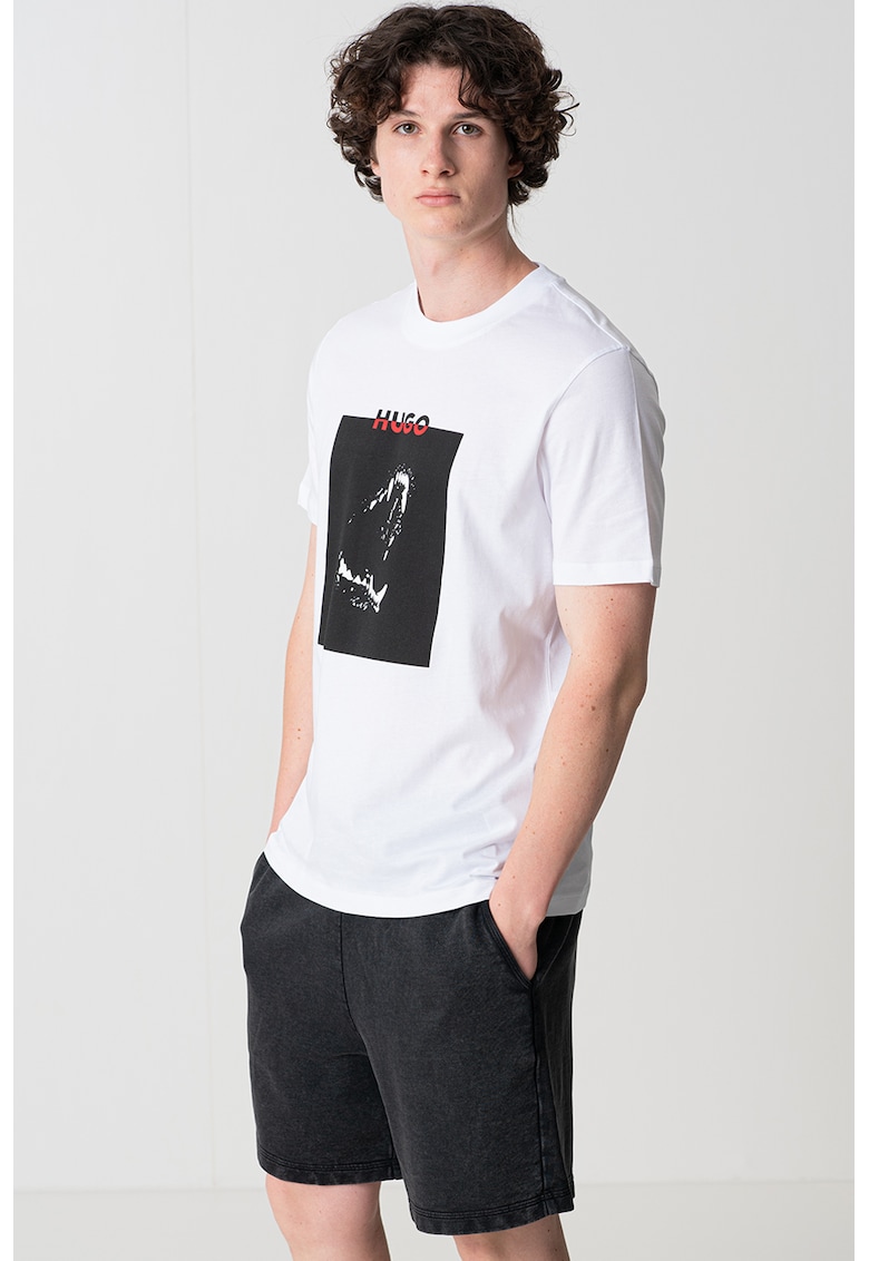 - negru stins Imprimeu: logo Material: bumbac Croiala: regular fit Model: decolteu la baza gatului Lungime maneca: maneca scurta Compozitie Exterior: 100% bumbac Info model Modelul poarta un produs de marimea M. Marimi model: 189 cm inaltime