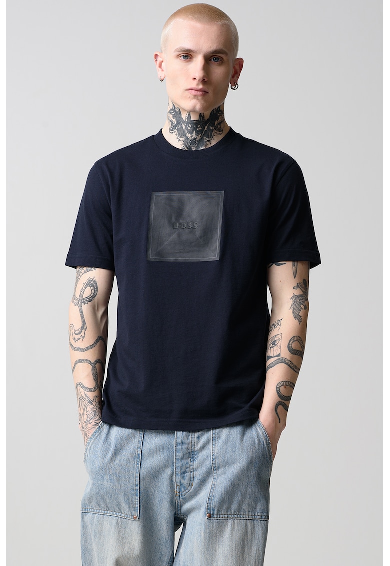 Caracteristici Culoare: bleumarin Imprimeu: logo Material: bumbac Croiala: regular fit Model: decolteu la baza gatului Lungime maneca: maneca scurta Compozitie Exterior: 100% bumbac Info model Modelul poarta un produs de marimea M. Marimi model: 188 cm inaltime