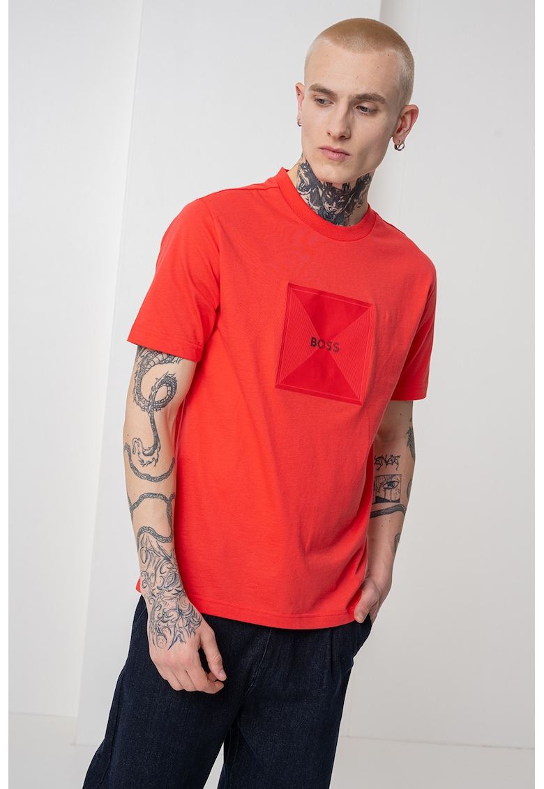Caracteristici Culoare: rosu Imprimeu: logo Material: bumbac Croiala: regular fit Model: decolteu la baza gatului Lungime maneca: maneca scurta Compozitie Exterior: 100% bumbac Info model Modelul poarta un produs de marimea M. Marimi model: 188 cm inaltime