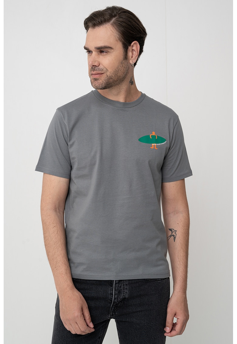 - albastru deschis Imprimeu: grafic Material: bumbac Croiala: regular fit Model: decolteu la baza gatului Lungime maneca: maneca scurta Compozitie Exterior: 100% bumbac Info model Modelul poarta un produs de marimea M. Marimi model: 195 cm inaltime