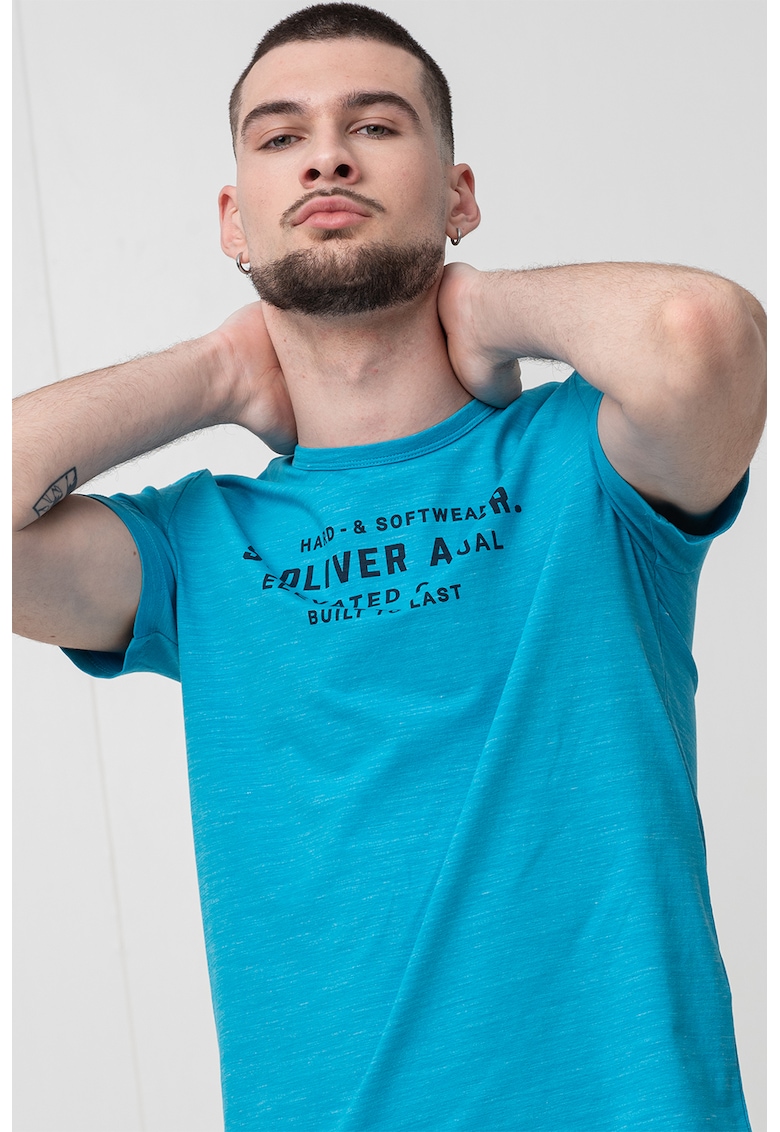 Caracteristici Culoare: albastru Imprimeu: text Material: bumbac Croiala: regular fit Model: decolteu la baza gatului Lungime maneca: maneca scurta Compozitie Exterior: 83% bumbac