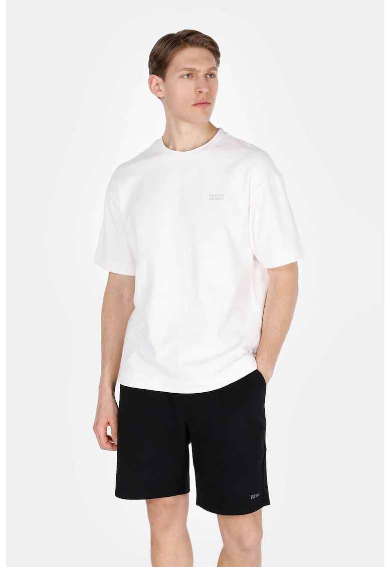 - gri deschis Imprimeu: text Material: bumbac Croiala: regular fit Model: decolteu la baza gatului Lungime maneca: maneca scurta Detalii: imprimeu text