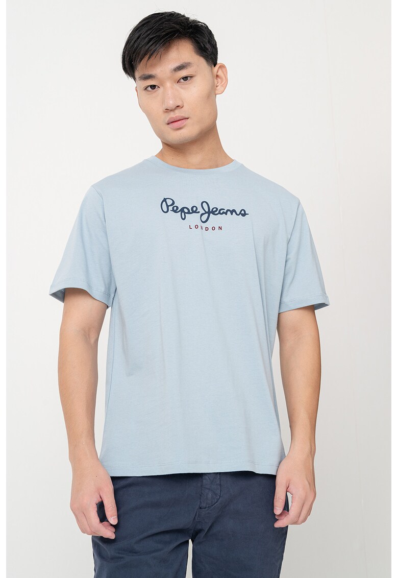 Caracteristici Culoare: albastru azur Imprimeu: logo Material: bumbac Croiala: lejer Model: decolteu la baza gatului Lungime maneca: maneca scurta Compozitie Exterior: 100% bumbac Info model Modelul poarta un produs de marimea M. Marimi model: 183 cm inaltime