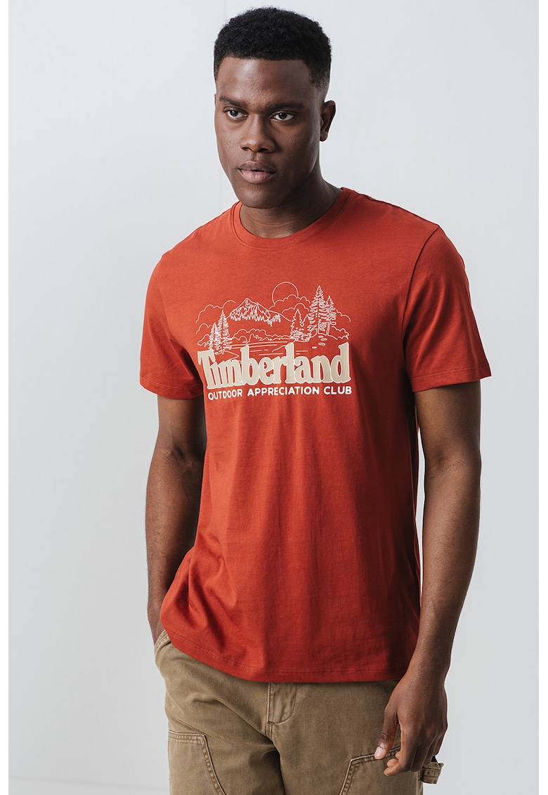 Caracteristici Culoare: caramiziu Imprimeu: logo Material: bumbac Croiala: regular fit Model: decolteu la baza gatului Lungime maneca: maneca scurta Compozitie Exterior: 100% bumbac Info model Modelul poarta un produs de marimea M. Marimi model: 184 cm inaltime