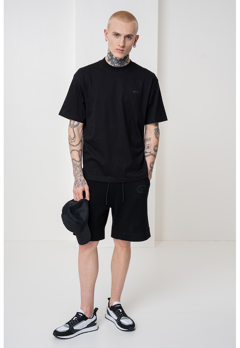 Caracteristici Culoare: negru Imprimeu: text Material: bumbac Croiala: lejer Model: decolteu la baza gatului Lungime maneca: maneca scurta Compozitie Exterior: 100% bumbac Info model Modelul poarta un produs de marimea M. Marimi model: 188 cm inaltime