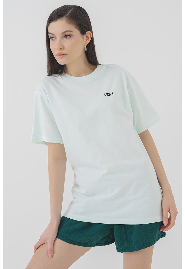 - albastru glaciar Imprimeu: uni Material: bumbac Croiala: regular fit Model: decolteu la baza gatului Lungime maneca: maneca scurta Compozitie Exterior: 100% bumbac Info model Modelul poarta un produs de marimea S. Marimi model: 176 cm inaltime