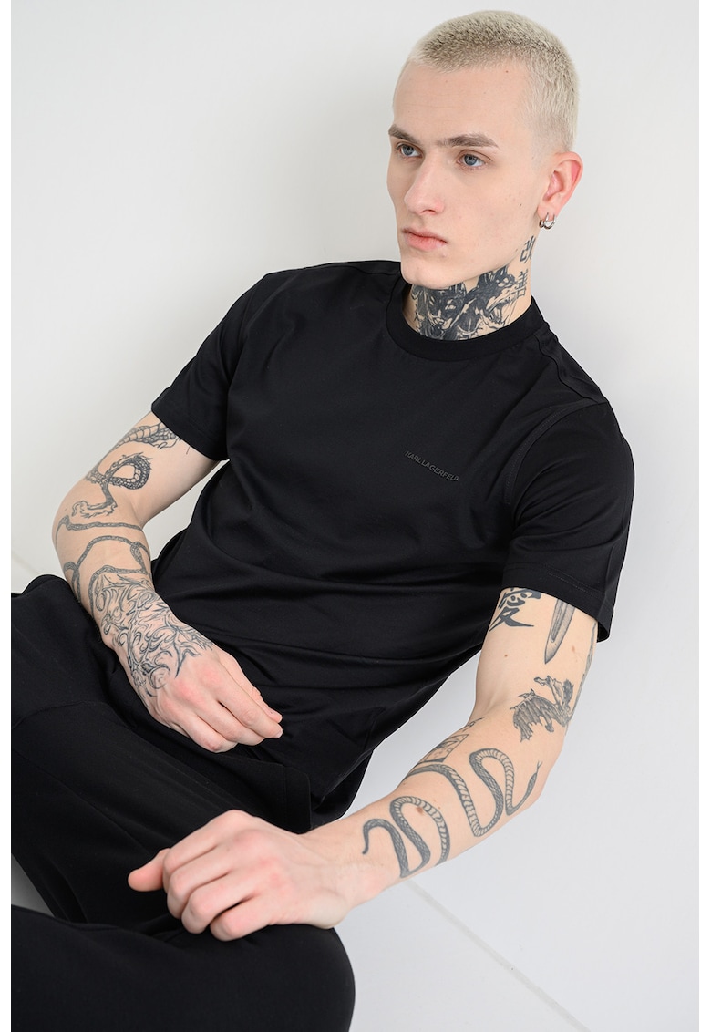 Caracteristici Culoare: negru Imprimeu: uni Material: bumbac Croiala: regular fit Model: rotund Lungime maneca: maneca scurta Compozitie Exterior: 100% bumbac Info model Modelul poarta un produs de marimea M. Marimi model: 188 cm inaltime