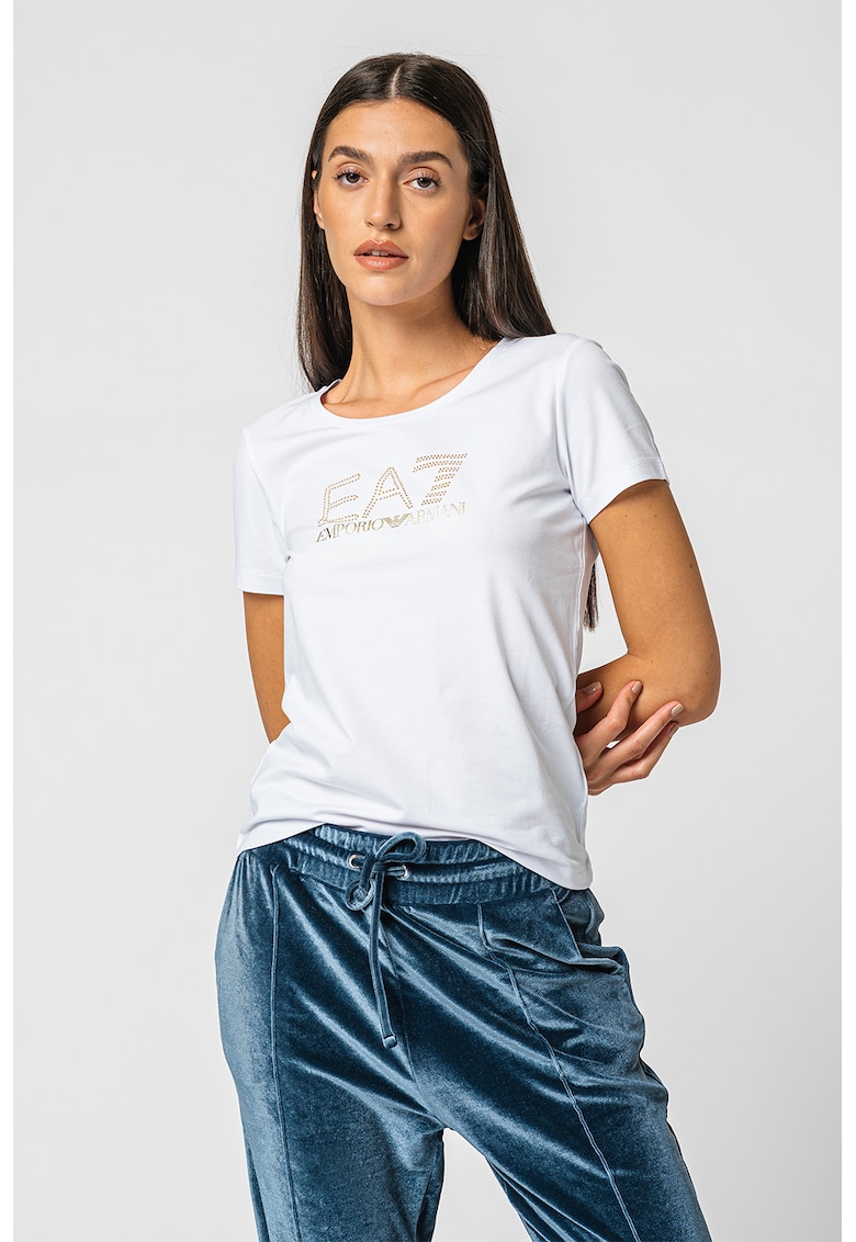 - auriu Imprimeu: logo Material: bumbac Croiala: regular fit Model: rotund Lungime maneca: maneca scurta Detalii: aplicatii cu nituri