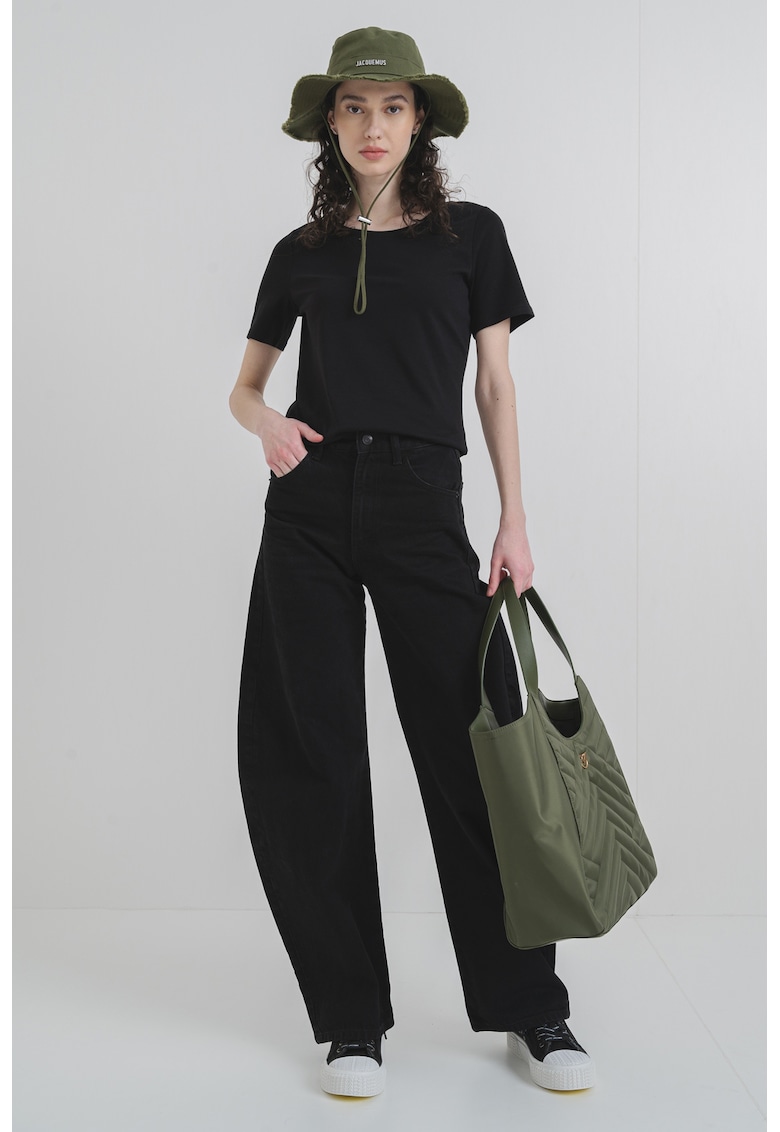 Caracteristici Culoare: negru Imprimeu: uni Material: bumbac Croiala: regular fit Model: rotund Lungime maneca: maneca scurta Compozitie Exterior: 100% bumbac Info model Modelul poarta un produs de marimea S/36 EU. Marimi model: 177 cm inaltime