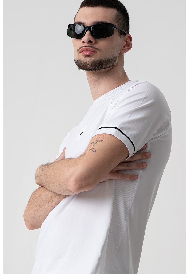 - alb optic Imprimeu: uni Material: bumbac Croiala: regular fit Model: decolteu la baza gatului Lungime maneca: maneca scurta Detalii: contrastante Compozitie Exterior: 95% bumbac