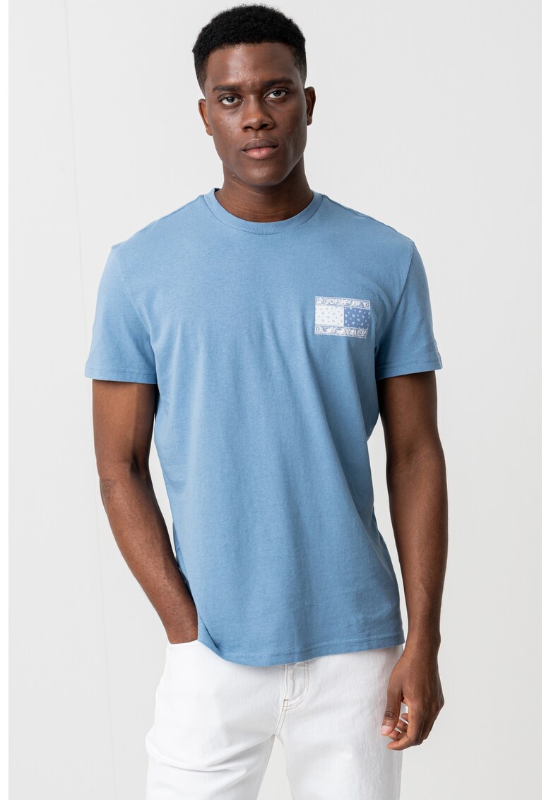 - grafic Material: bumbac Croiala: regular fit Model: rotund Lungime maneca: maneca scurta Compozitie Exterior: 100% bumbac Info model Modelul poarta un produs de marimea M. Marimi model: 184 cm inaltime