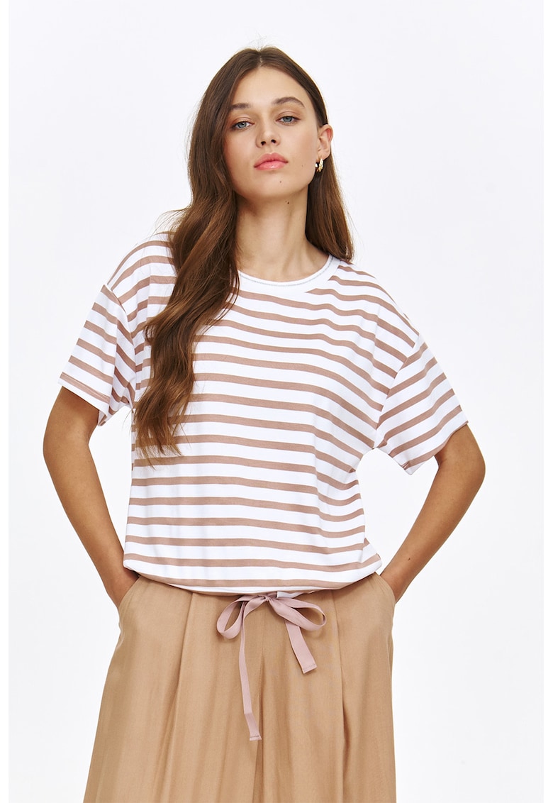 - elastan Croiala: regular fit Model: decolteu la baza gatului Lungime maneca: maneca scurta Detalii: prindere cu snur la terminatie Compozitie Exterior: 57% viscoza