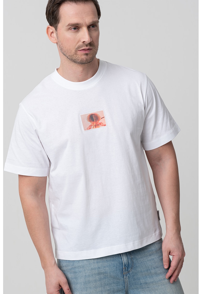 - alb murdar Imprimeu: grafic Material: bumbac Croiala: regular fit Model: decolteu la baza gatului Lungime maneca: fara maneca Compozitie Exterior: 100% bumbac Info model Modelul poarta un produs de marimea M. Marimi model: 188 cm inaltime