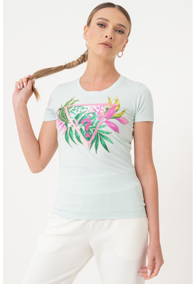- logo Material: bumbac Croiala: regular fit Model: rotund Lungime maneca: maneca scurta Detalii: aplicatie cu strasuri