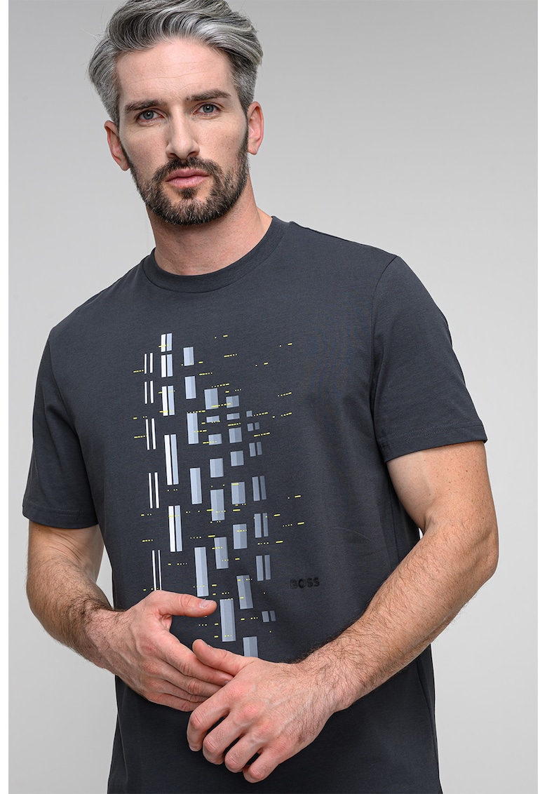 Caracteristici Culoare: gri inchis Imprimeu: geometric Material: bumbac Croiala: regular fit Model: decolteu la baza gatului Lungime maneca: maneca scurta Compozitie Exterior: 95% bumbac