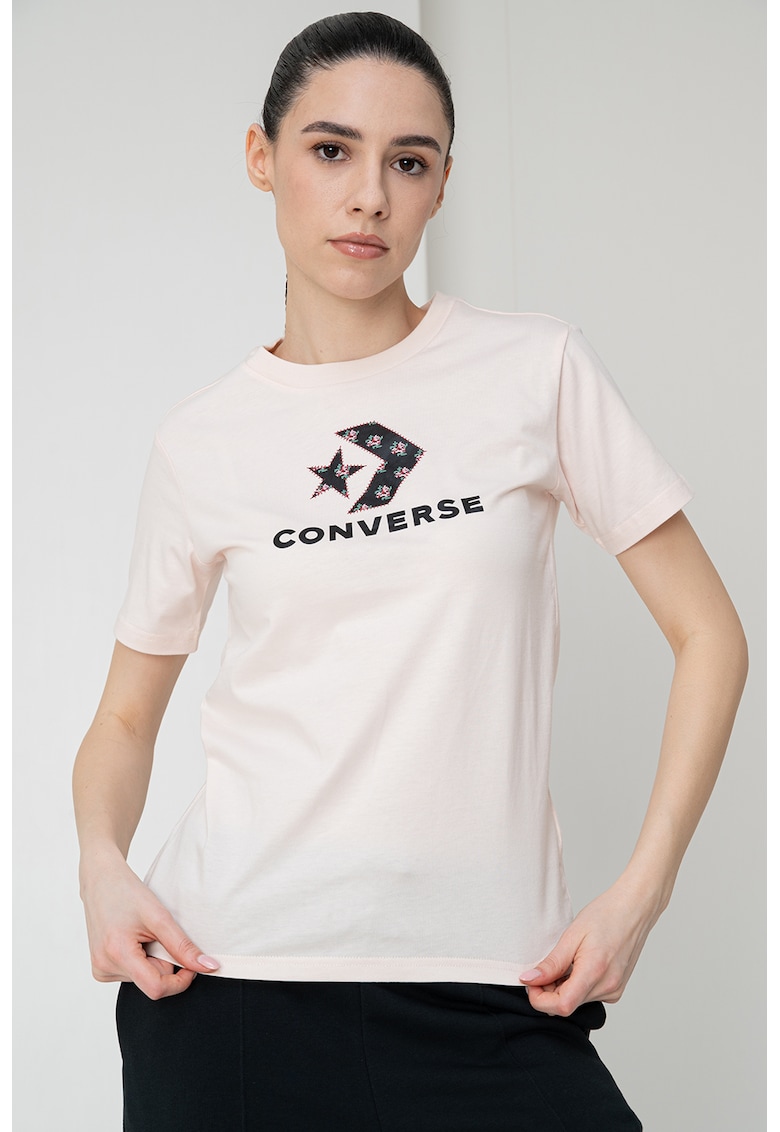 - roz pal Imprimeu: logo Material: bumbac Croiala: regular fit Model: decolteu la baza gatului Lungime maneca: maneca scurta Compozitie Exterior: 100% bumbac Info model Modelul poarta un produs de marimea S. Marimi model: 177 cm inaltime