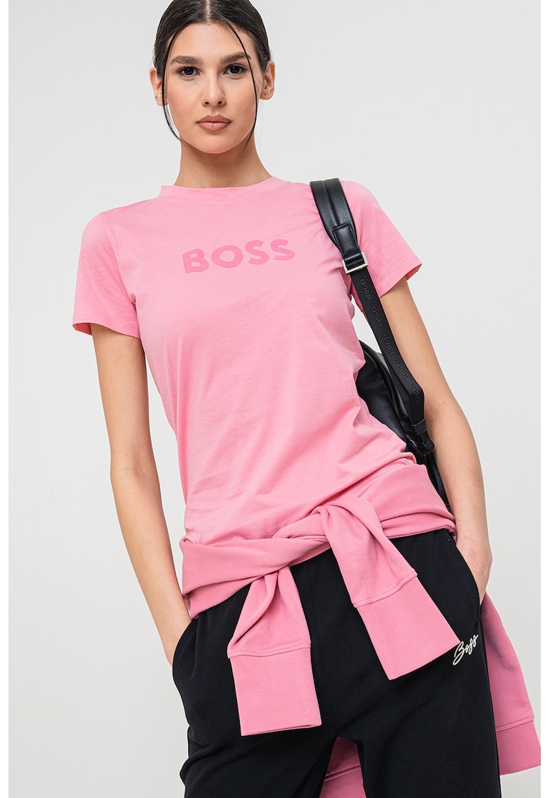 Caracteristici Culoare: roz prafuit Imprimeu: logo Material: bumbac Croiala: slim fit Model: decolteu la baza gatului Lungime maneca: maneca scurta Compozitie Exterior: 100% bumbac Info model Modelul poarta un produs de marimea S. Marimi model: 181 cm inaltime