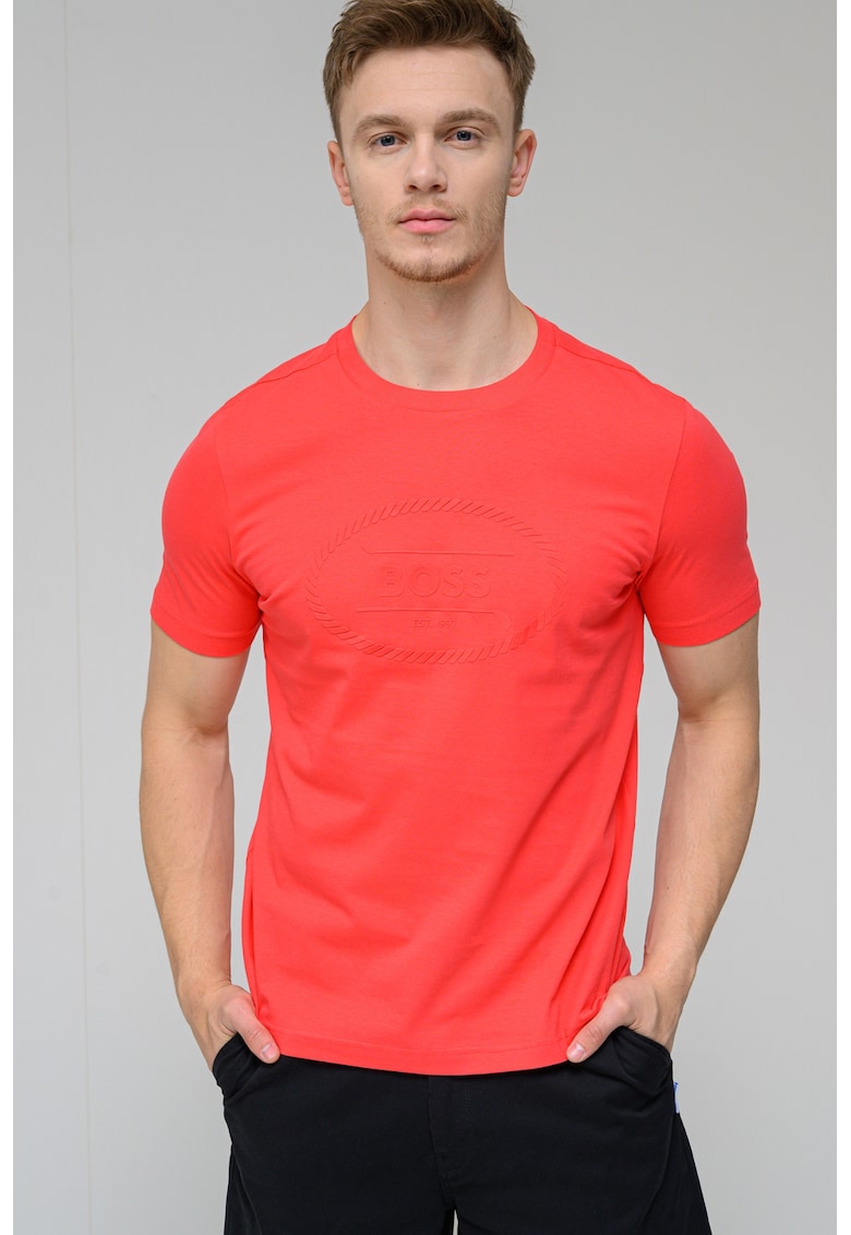 Caracteristici Culoare: coral Imprimeu: logo Material: bumbac Croiala: regular fit Model: decolteu la baza gatului Lungime maneca: maneca scurta Compozitie Exterior: 100% bumbac Info model Modelul poarta un produs de marimea M. Marimi model: 191 cm inaltime