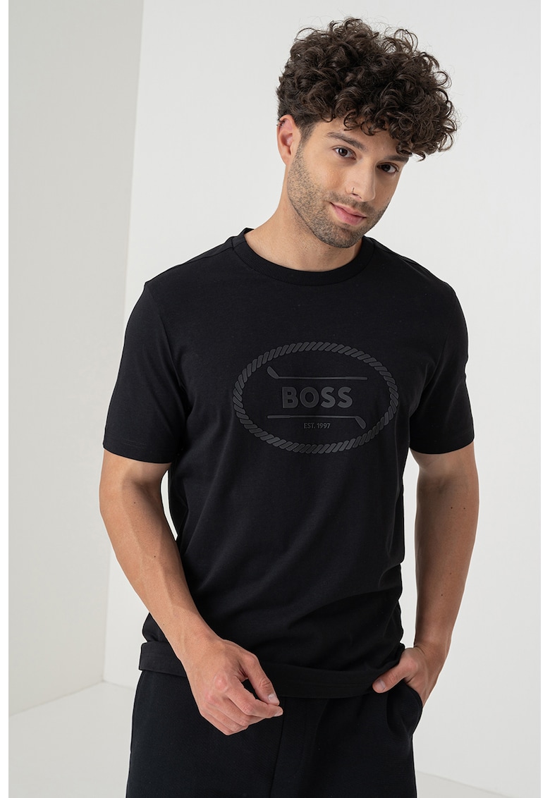 Caracteristici Culoare: negru Imprimeu: logo Material: bumbac Croiala: regular fit Model: decolteu la baza gatului Lungime maneca: maneca scurta Compozitie Exterior: 100% bumbac Info model Modelul poarta un produs de marimea M. Marimi model: 179 cm inaltime