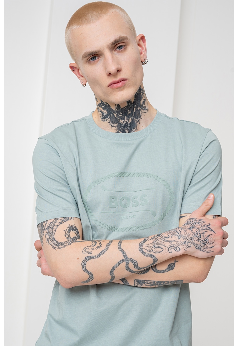 Caracteristici Culoare: verde deschis Imprimeu: logo Material: bumbac Croiala: regular fit Model: decolteu la baza gatului Lungime maneca: maneca scurta Compozitie Exterior: 100% bumbac Info model Modelul poarta un produs de marimea M. Marimi model: 188 cm inaltime