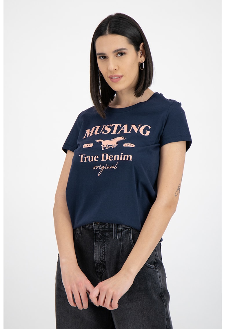 Caracteristici Culoare: bleumarin Imprimeu: logo Material: bumbac Croiala: regular fit Model: decolteu la baza gatului Lungime maneca: maneca scurta Compozitie Exterior: 100% bumbac Info model Modelul poarta un produs de marimea S. Marimi model: 176 cm inaltime