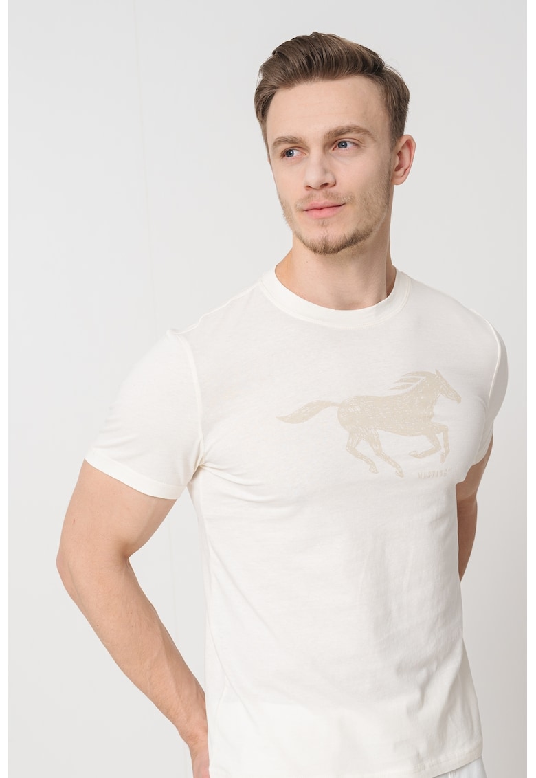 Caracteristici Culoare: alb fildes Imprimeu: logo Material: bumbac Croiala: regular fit Model: decolteu la baza gatului Lungime maneca: maneca scurta Compozitie Exterior: 100% bumbac Info model Modelul poarta un produs de marimea M. Marimi model: 191 cm inaltime