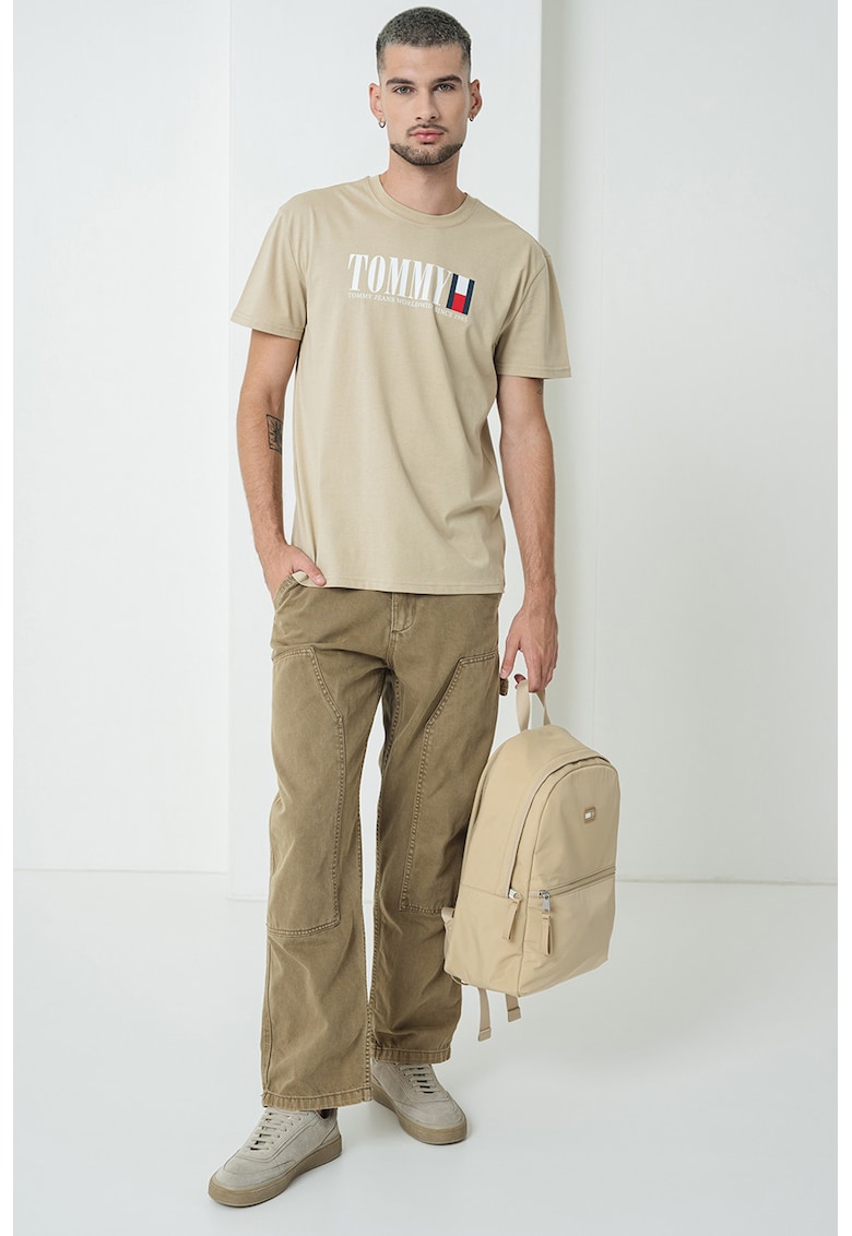 Caracteristici Culoare: maro nisip Imprimeu: logo Material: bumbac Croiala: regular fit Model: decolteu la baza gatului Lungime maneca: maneca scurta Compozitie Exterior: 100% bumbac Info model Modelul poarta un produs de marimea M. Marimi model: 190 cm inaltime