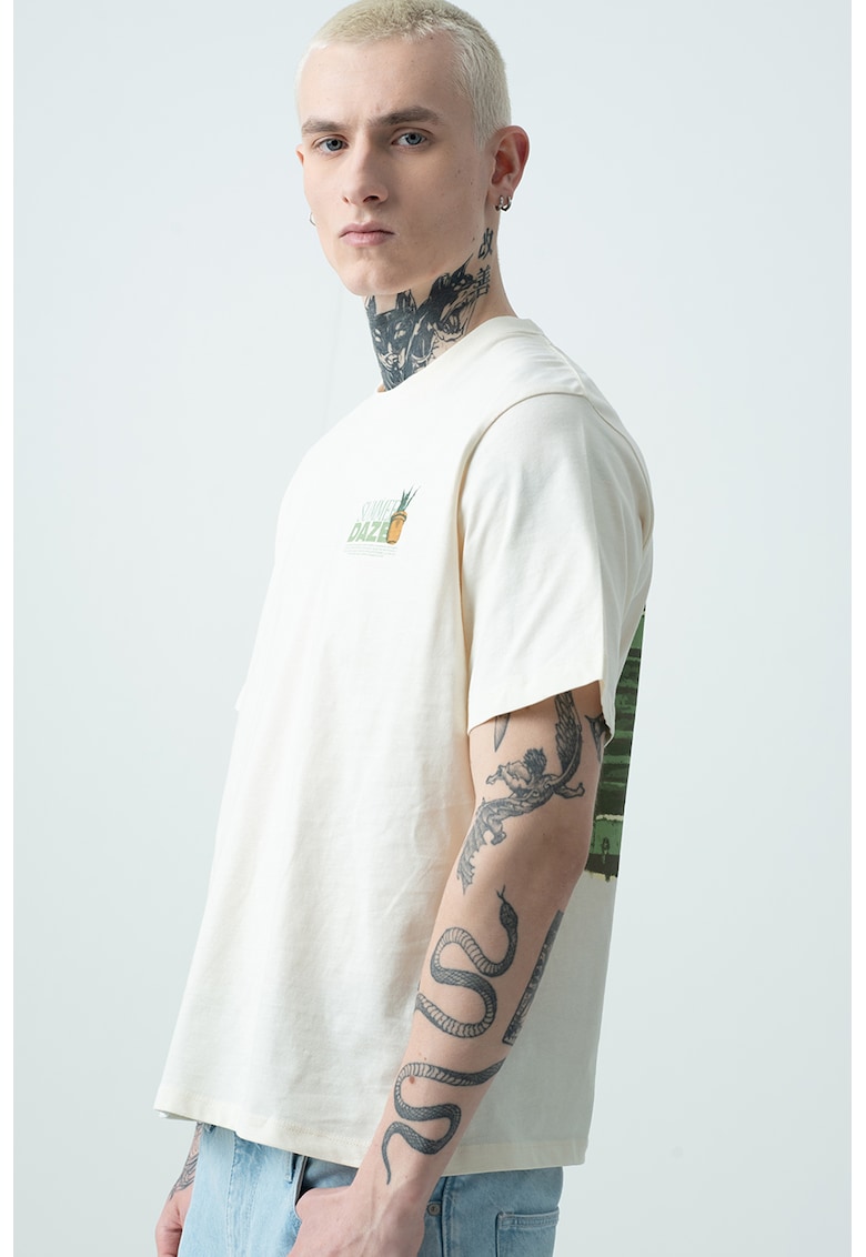 - crem Imprimeu: uni Material: bumbac Croiala: regular fit Model: decolteu la baza gatului Lungime maneca: maneca scurta Compozitie Exterior: 100% bumbac Info model Modelul poarta un produs de marimea M. Marimi model: 188 cm inaltime