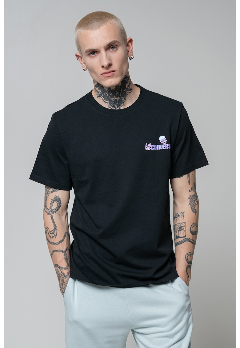 - grafic Material: bumbac Croiala: regular fit Model: decolteu la baza gatului Lungime maneca: maneca scurta Compozitie Exterior: 100% bumbac Info model Modelul poarta un produs de marimea M. Marimi model: 188 cm inaltime
