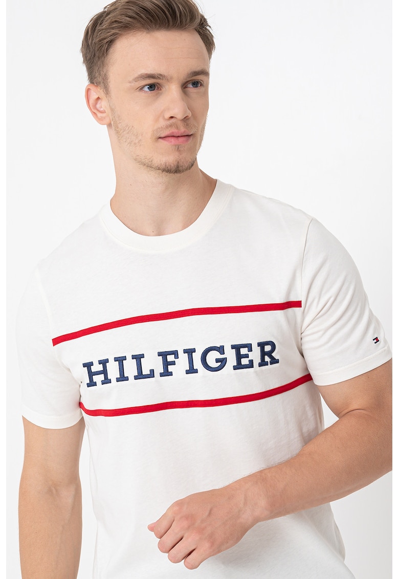 - crem Imprimeu: logo Material: bumbac Croiala: regular fit Model: decolteu la baza gatului Lungime maneca: maneca scurta Compozitie Exterior: 96% bumbac